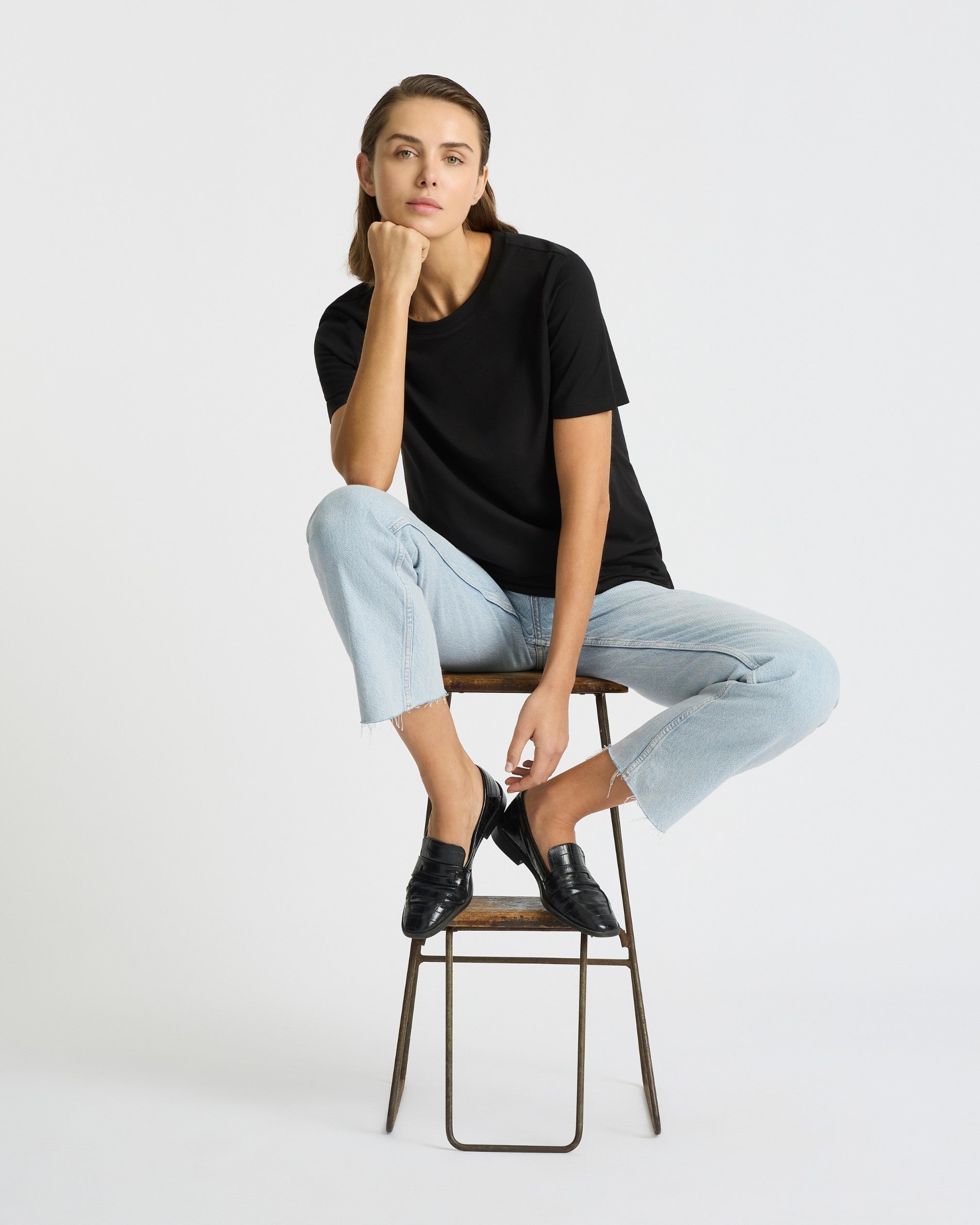 With its classic fit and full-length cut, this tee redefines everyday comfort. The midweight cotton drapes naturally while holding its shape, offering a clean, structured silhouette that moves with you — from workdays to weekends.